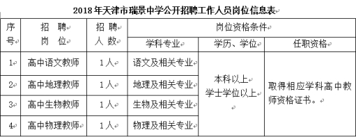 天津市瑞景中學(xué)2018年公開招聘實施方案