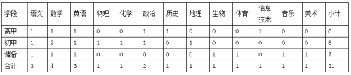 本次擬招聘各科教師人數(shù)如下: