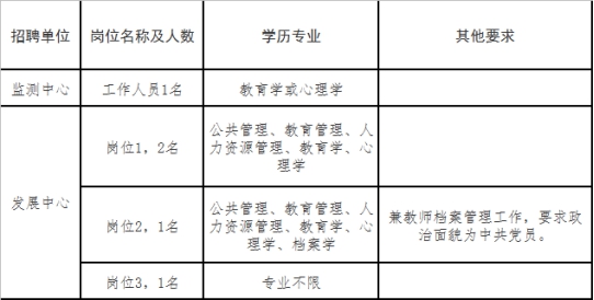 監(jiān)測中心工作人員1名,發(fā)展中心工作人員4名,均為專業(yè)技術(shù)崗位。