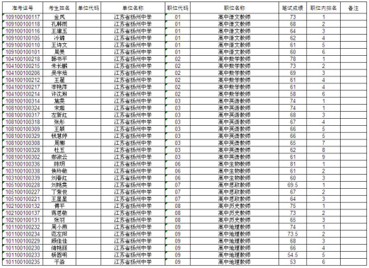 江蘇省揚州中學(xué)2017年12月公開招聘教師面試人員名單
