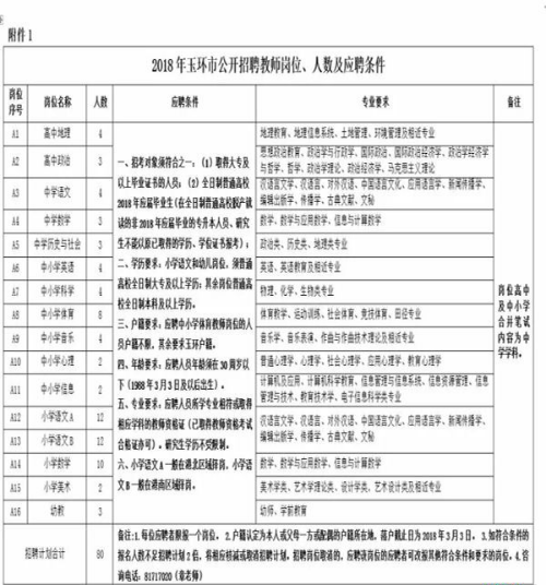 2018年臺州玉環(huán)市招事業(yè)編制教師80人公告