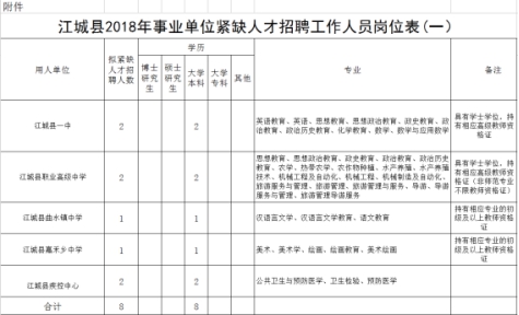 詳見《江城縣2018年事業(yè)單位緊缺人才招聘工作人員崗位表》