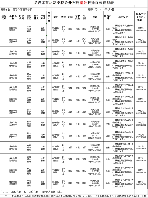龍巖體育運動學校公開招聘編外教師崗位信息表 (單擊左側(cè)鏈接可下載)