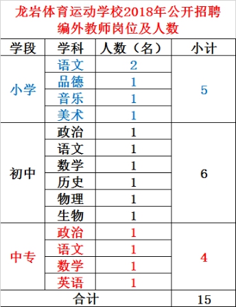 龍巖體育運動學校2018年公開招聘編外教師公告