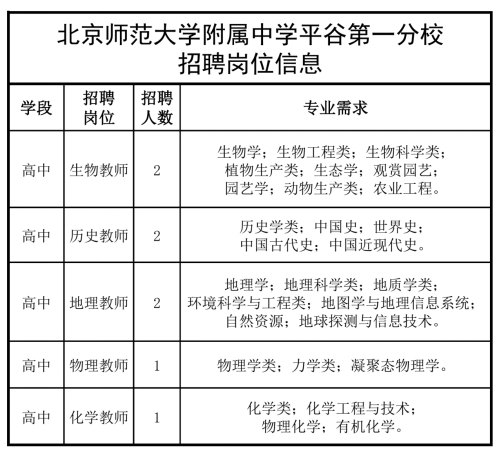 5、專業(yè)條件:參見《北京師大附中平谷第一分校招聘崗位信息表》(上圖);