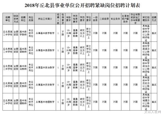 本次招聘縣第二中學(xué)校高中緊缺專業(yè)教師5名,具體招聘崗位、招聘條件及相關(guān)要求請(qǐng)登錄文山人社網(wǎng)(www.ynwsrs.gov.cn)、丘北政務(wù)網(wǎng)(www.ynqb.gov.cn)查看《2018年丘北縣事業(yè)單位公開招聘緊缺崗位招聘計(jì)劃表》。