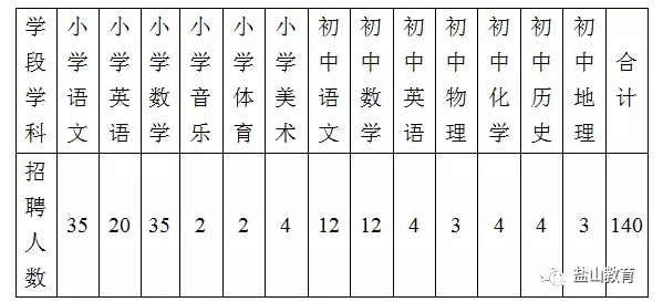 農(nóng)村中小學(xué)教師共140名。崗位及數(shù)量如下: