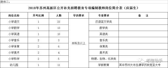 根據(jù)《蘇州高新區(qū)公辦中小學(xué)(幼兒園)教育專項(xiàng)編制教師管理暫行辦法》(蘇高新管〔2018〕112號)文件的有關(guān)規(guī)定,經(jīng)蘇州高新區(qū)管委會(huì)批準(zhǔn),2018年蘇州高新區(qū)所屬公辦學(xué)校面向社會(huì)公開補(bǔ)充招聘教育專項(xiàng)編制教師165名。
