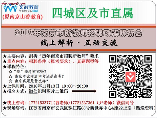 (5)本次筆試成績作為應(yīng)聘南京市秦淮區(qū)所屬學校新進教師的必備條件,在2019年度內(nèi)有效。