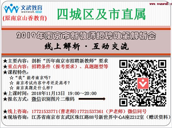 (5)本次筆試成績(jī)作為應(yīng)聘南京市教育局直屬學(xué)校新進(jìn)教師的必備條件,在2019年度內(nèi)有效。