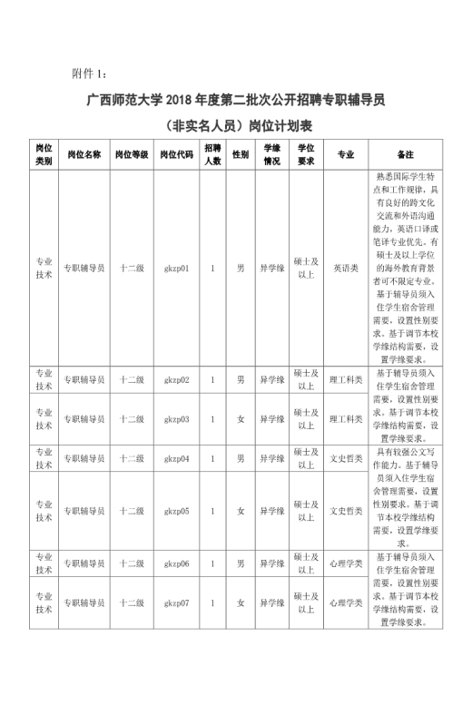 附件1:廣西師范大學(xué)2018年度第二批次公開招聘專職輔導(dǎo)員(非實名人員)崗位計劃表.pdf