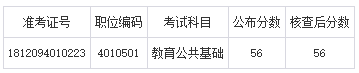 攀枝花市仁和區(qū)2018年下半年公開招聘中小學及幼兒教師筆試考試查分結果表