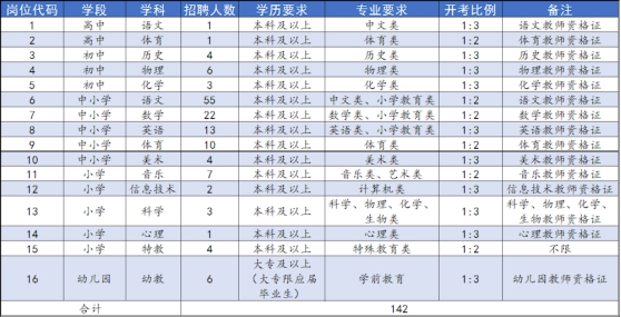 4.師范類本科畢業(yè)生(須具有相應學位)報考語文、數(shù)學、音樂、體育、特教教師崗位,不受生源地限制;