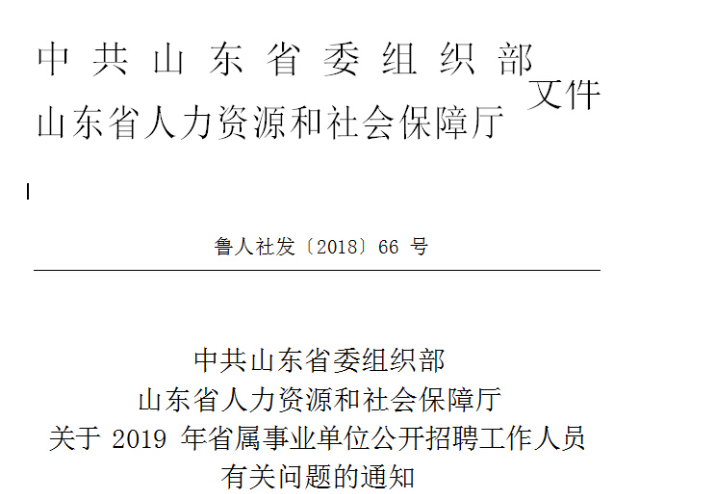 為切實(shí)做好 2019 年省屬事業(yè)單位工作人員公開招聘工作,根據(jù)《事業(yè)單位人事管理?xiàng)l例》(國務(wù)院令第 652 號)、《事業(yè)單位公開招聘人員暫行規(guī)定》(人事部令第 6 號)和《山東省事業(yè)單位公開招聘工作規(guī)程》(魯人社發(fā)〔2015〕6 號)等有關(guān)規(guī)定,現(xiàn)就有關(guān)問題通知如下:
