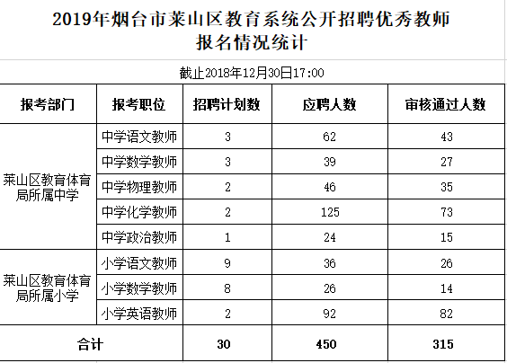 | 2019山東煙臺市萊山區(qū)教育系統(tǒng)招聘優(yōu)秀教師報名情況統(tǒng)計