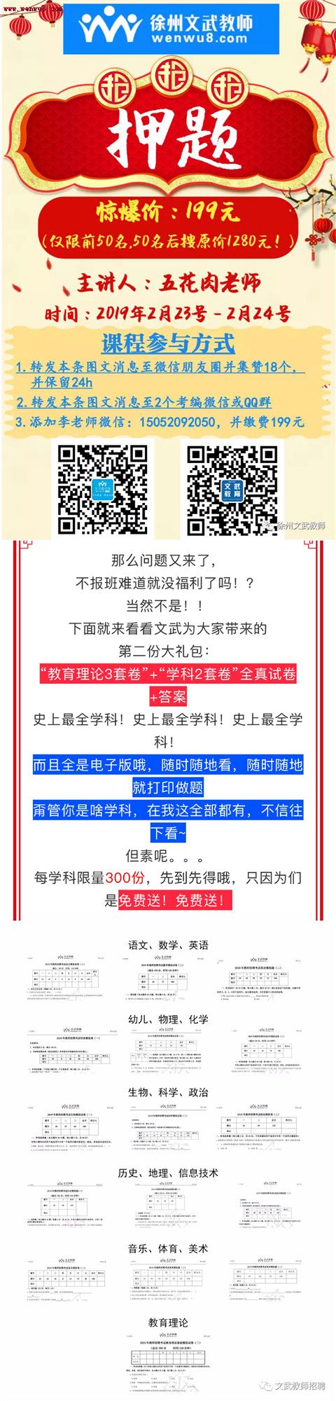 面試成績?yōu)榘俜种啤PW(xué)音樂(崗位代碼0821133、0821134、0821135)崗位面試采取模擬課堂和專業(yè)技能測試相結(jié)合的方式進行,其面試成績?yōu)槟M課堂成績與專業(yè)技能測試成績之和。模擬課堂要求在規(guī)定時間內(nèi),按指定內(nèi)容獨立備課(40分鐘),模擬課堂(15分鐘),滿分為60分;專業(yè)技能測試滿分40分。專業(yè)技能測試具體辦法另行通知,在中國睢寧門戶網(wǎng)站公布。