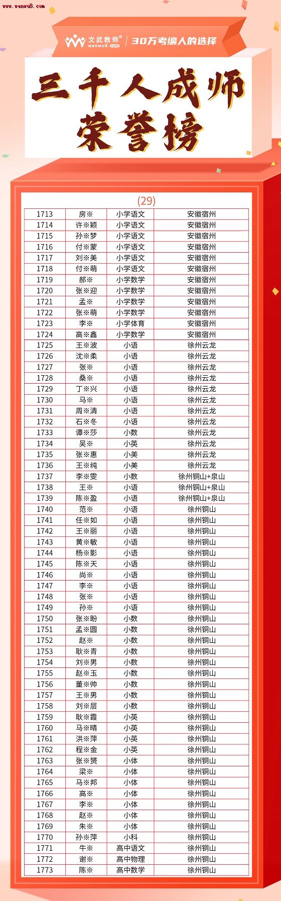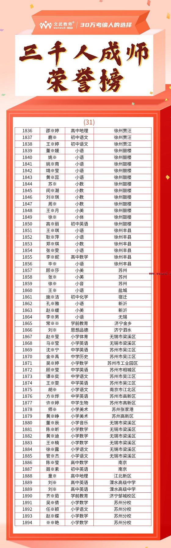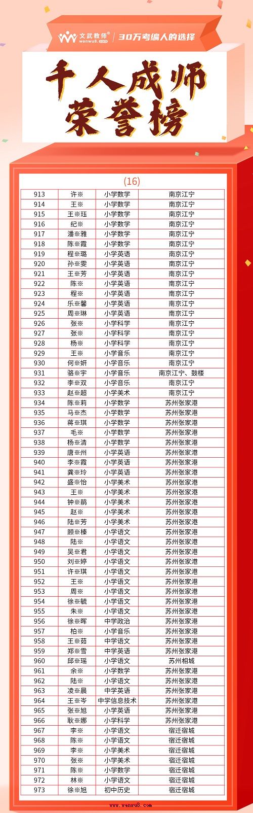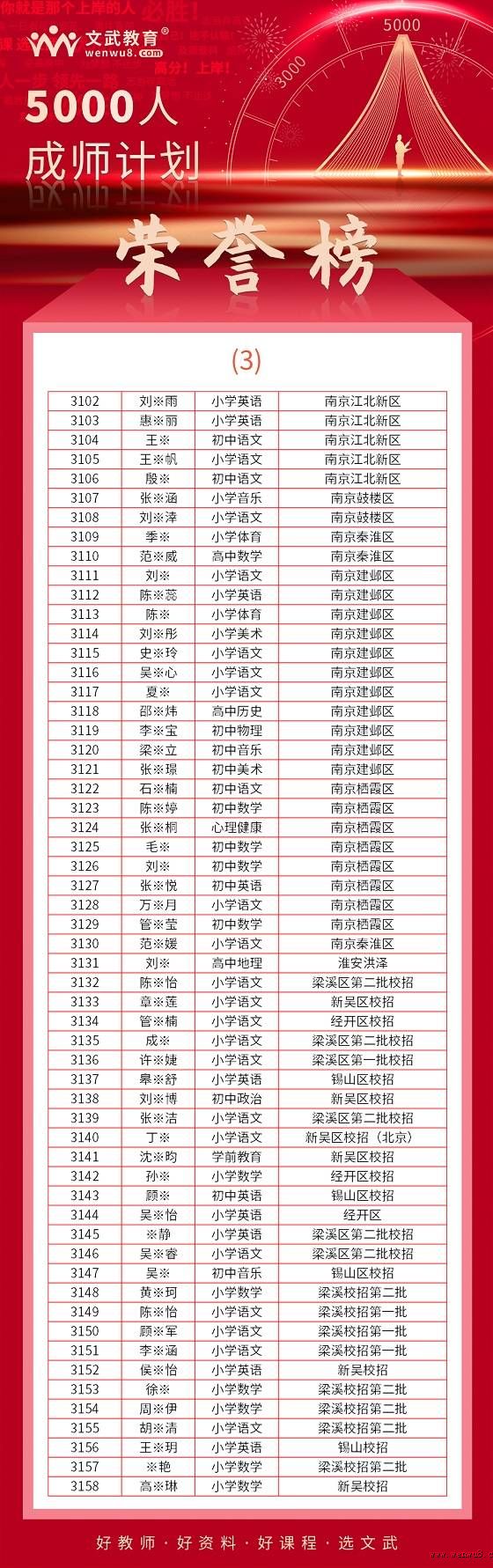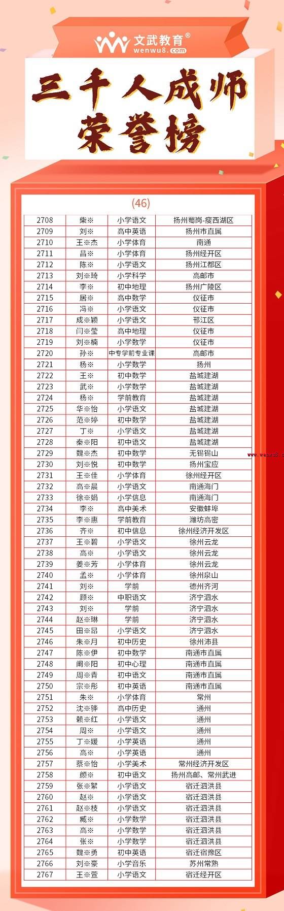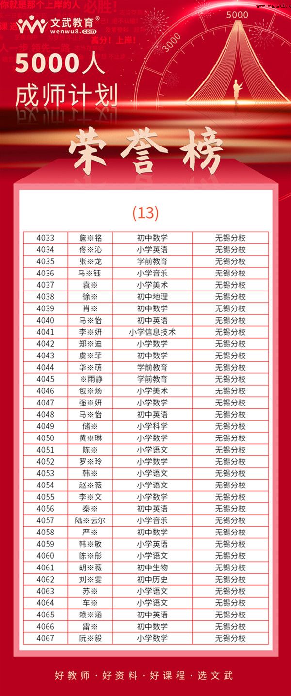 文武教師千人成師計(jì)劃順利上岸名單 面試,通過后再繳費(fèi)