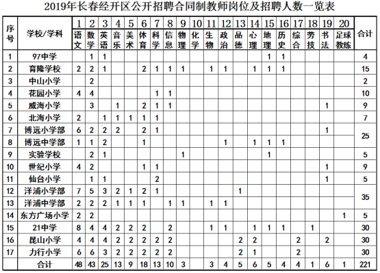 2019年長春經(jīng)濟技術(shù)開發(fā)區(qū)教師招聘公告【221人】