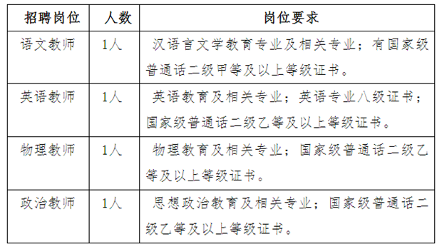 語(yǔ)文教師:1人;數(shù)學(xué)教師:1人;英語(yǔ)教師:1人。
