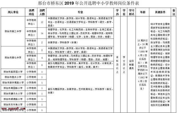 1、邢臺(tái)市橋東區(qū)2019年公開選聘中小學(xué)教師崗位條件表