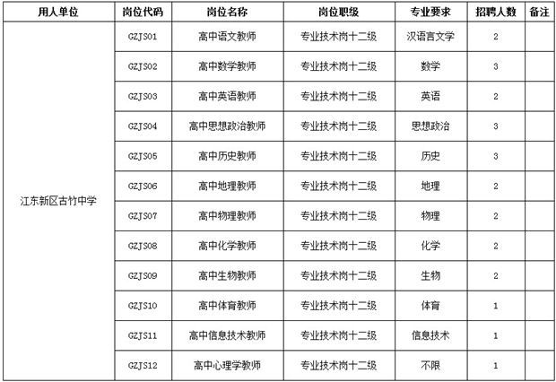 為做好江東新區(qū)古竹中學(xué)招聘教師工作,根據(jù)《廣東省事業(yè)單位公開招聘人員辦法》(廣東省人民政府令第139號(hào))精神,經(jīng)河源江東新區(qū)管委會(huì)同意,河源江東新區(qū)社會(huì)事務(wù)局定于2019年4月組織專場(chǎng)招聘工作,F(xiàn)就招聘有關(guān)事項(xiàng)公告如下。