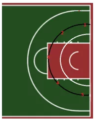 籃球——定點(diǎn)投籃,自搶自投,不得帶球走,違例后下一個(gè)球不計(jì)分。1分30秒內(nèi)完成10次投籃,總5個(gè)點(diǎn),每個(gè)點(diǎn)2次,中籃一次計(jì)1.5分,超時(shí)后投籃中籃不計(jì)分。