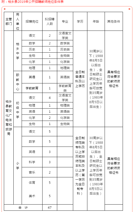 2019邢臺教師招聘 河北邢臺柏鄉(xiāng)縣關(guān)于公開招聘教師的公告【47人】