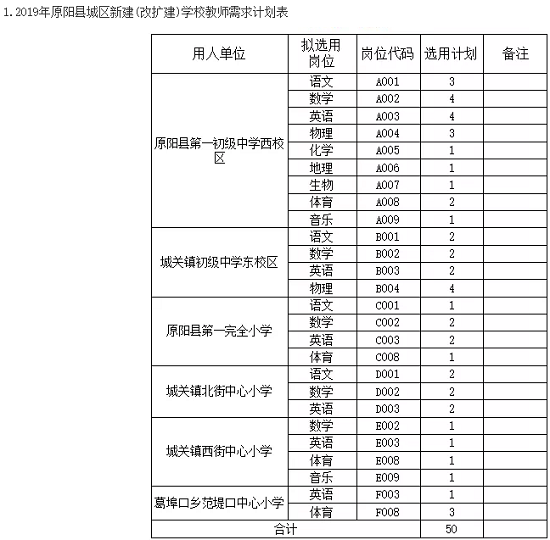 2019河南新鄉(xiāng)教師招聘 原陽縣城區(qū)擴建學(xué)校遴選教師【50人】
