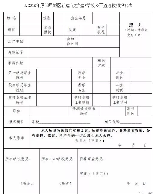 4.報名辦法:本次報名采取現(xiàn)場報名的方式進(jìn)行,報名人員只能選擇一個崗位報名,報名與參加考試使用的身份證必須一致。申報學(xué)科與教師資格證不一致且與現(xiàn)任學(xué)科一致,由學(xué)校出具現(xiàn)任學(xué)科證明,中心學(xué)校蓋章簽字。報名時報考人員須提供本人教師資格證、學(xué)歷證、身份證、任職資格證、在原陽縣工作滿三年(含3年)以上證明(最近一次工資審批表即可)等證書原件及復(fù)印件(復(fù)印件自備檔案袋裝好),提交《原陽縣城區(qū)新建(改擴建)學(xué)校公開遴選教師報名表》(報名表下載:郵箱yuanyangxianjiaoyu@163.com密碼yy7291648)一份,現(xiàn)場采集照像。報名人員需關(guān)注原陽縣教育體育局微信公眾號,本次報名所有信息以原陽縣教育體育局微信公眾平臺發(fā)布內(nèi)容為準(zhǔn)。