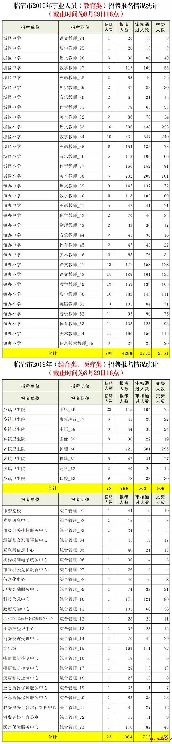 山東教師招聘 聊城臨清事業(yè)單位2019年教師招聘報名情況統(tǒng)計公示