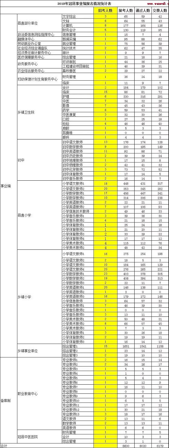 山東聊城冠縣2019年教師招聘報名繳費(fèi)情況統(tǒng)計公示