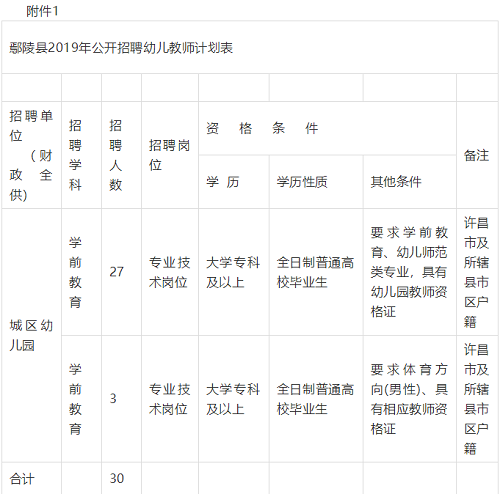2019河南教師招聘 許昌鄢陵縣招聘幼兒教師實施方案【30名】