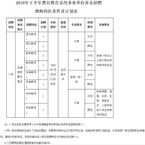 2019下半年湖南教師招聘 常德澧縣教育系統(tǒng)事業(yè)單位補(bǔ)充招聘教師公告【31人】