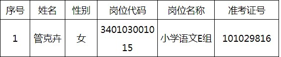 根據(jù)《2019年度安徽省中小學(xué)新任教師公開招聘公告》規(guī)定,依據(jù)筆試和面試合成總成績(jī),按職位招聘計(jì)劃數(shù),經(jīng)體檢、考察合格,擬錄聘以下第五批1名人員,現(xiàn)面向社會(huì)公示: