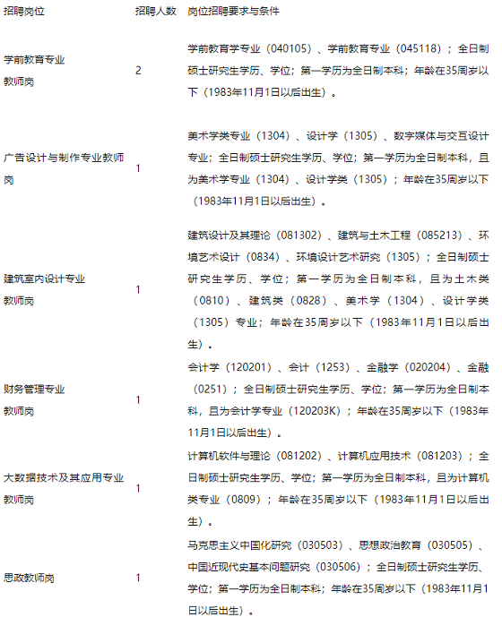 (2)大數(shù)據(jù)技術(shù)及其應(yīng)用專業(yè)教師崗、思政教師崗、專職輔導(dǎo)員崗的聯(lián)系人和聯(lián)系電話:吳老師,0791-88264188(辦),18070128781(手機(jī))(工作日8:30—16:10),Email:3393733701 qq.com。