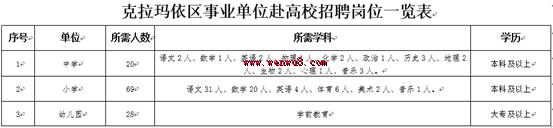 克拉瑪依區(qū)事業(yè)單位赴校招聘崗位一覽表