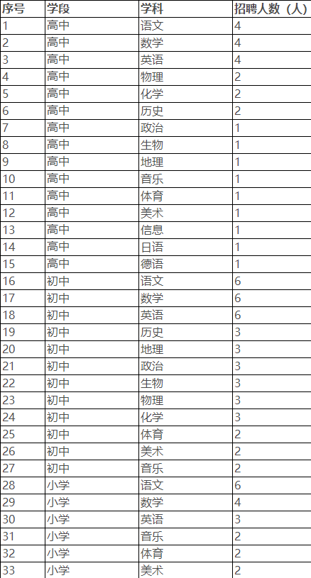 3.高、初中教師具備全日制本科及本科以上學歷;小學教師有三年以上工作經(jīng)歷者具備全日制師范專科及?埔陨蠈W歷,應屆畢業(yè)生需具備全日制本科及本科以上學歷。各學段教師須有相應教師資格證和相應專業(yè)。