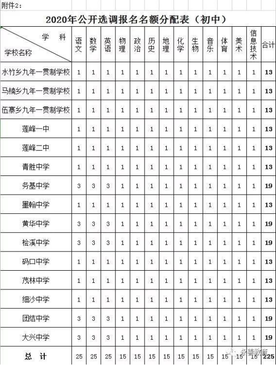 附件2:《永善縣2020年公開(kāi)選調(diào)報(bào)名名額分配表(初中)》