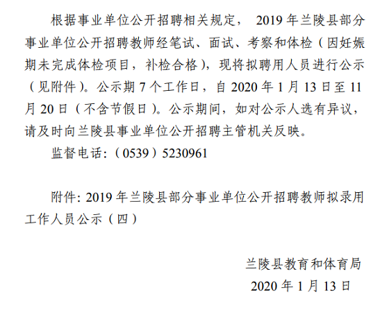 山東教師招聘 臨沂蘭陵縣部分事業(yè)單位2019年公開招聘教師擬錄用人員公示(四)