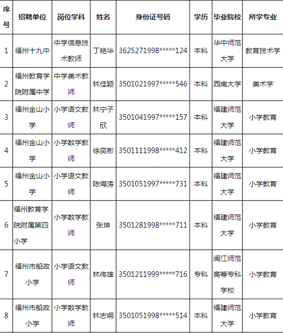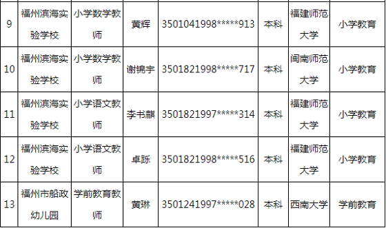 福建教師招聘 福州市教育局2020屆公費(fèi)師范生專場雙選會福州市屬學(xué)校擬聘用人員名單公示