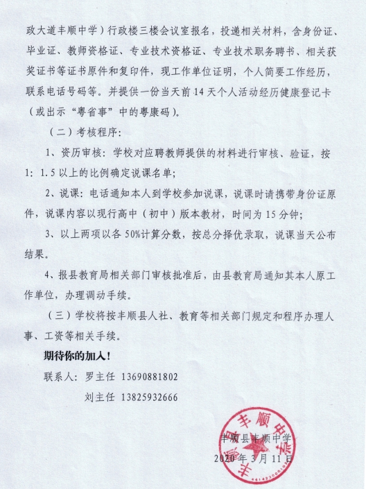廣東梅州豐順中學(xué)2020年春季教師遴選招聘【12人】3月19日報(bào)名 歡迎加入廣東教師考編群,群號:336260161,考情、招聘信息早知道