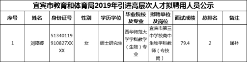 附件:宜賓市教育和體育局2019年引進高層次人才擬聘用人員公示