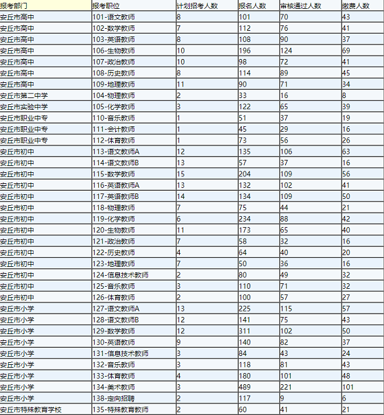 山東教師招聘 濰坊安丘市2020年教師招聘報(bào)名情況統(tǒng)計(jì)表(截至3月31日17點(diǎn))