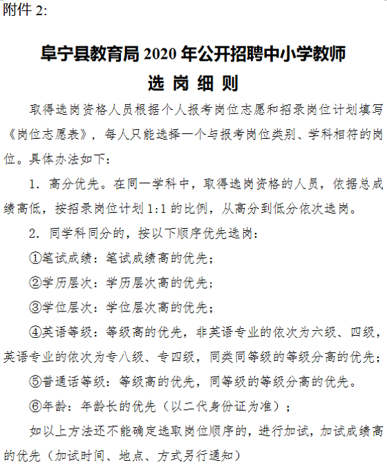 2.阜寧縣教育局2020年公開(kāi)招聘中小學(xué)教師選崗細(xì)則
