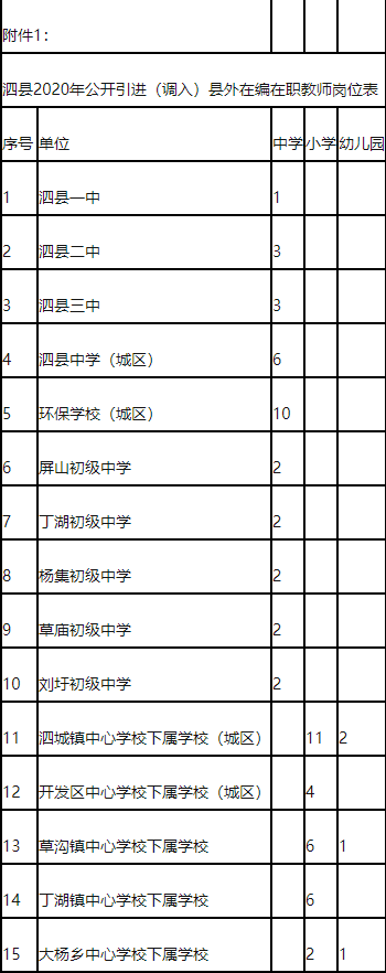 附件:1.泗縣2020年公開(kāi)引進(jìn)(調(diào)入)縣外在編在職教師崗位