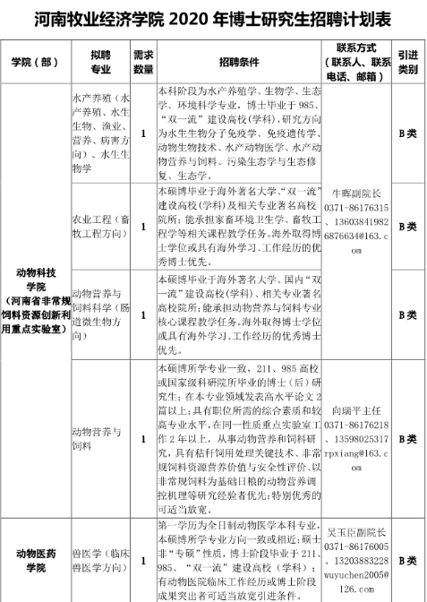 附:河南牧業(yè)經濟學院2020年博士研究生招聘計劃表