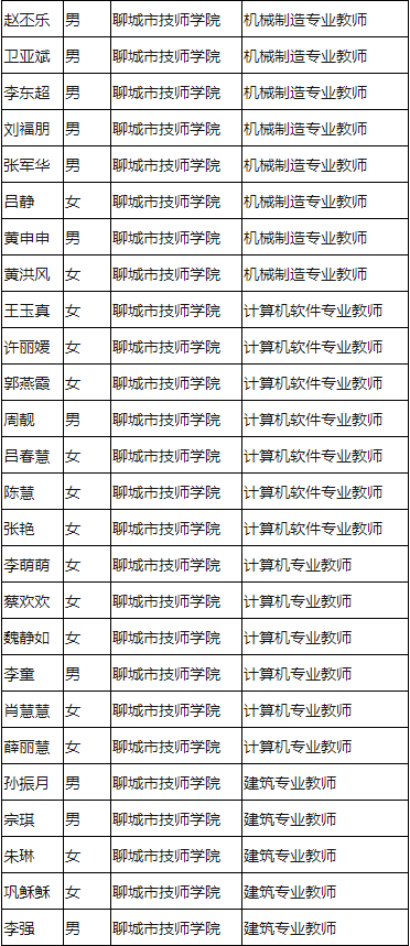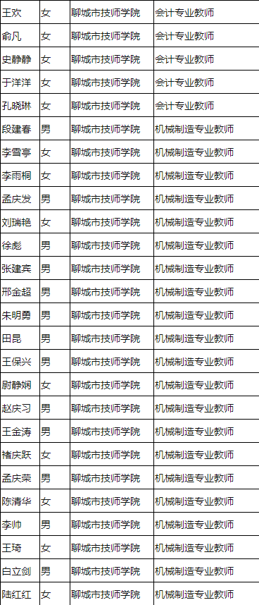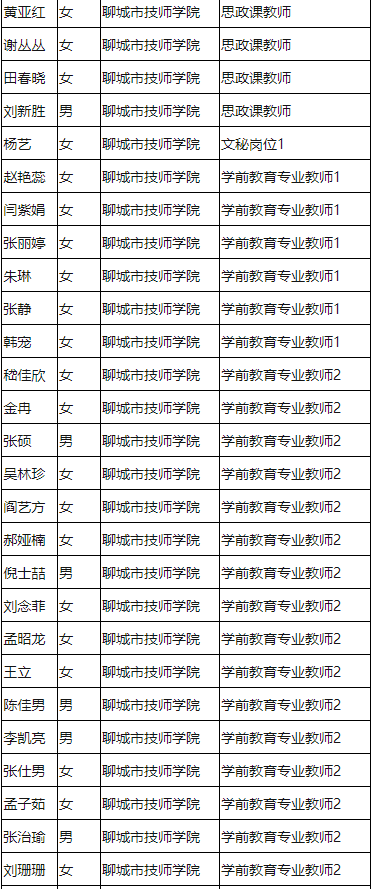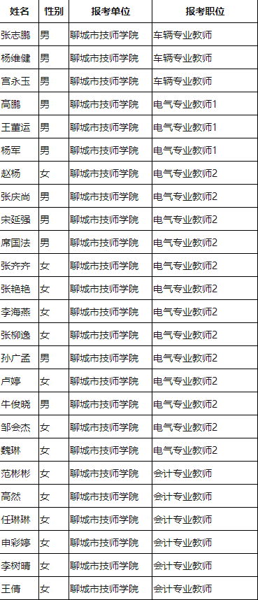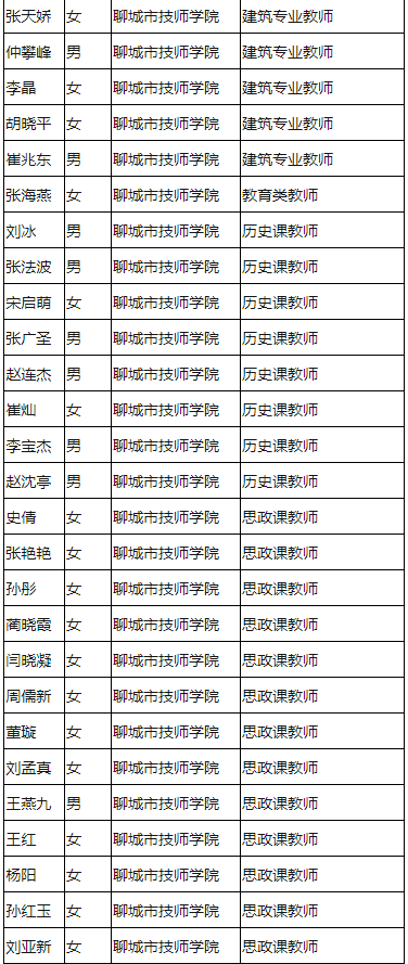 山東教師招聘 聊城技師學(xué)院2020引進(jìn)優(yōu)秀人才(教師)通過資格初審人員名單