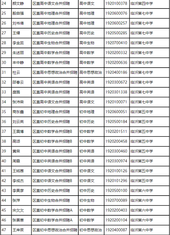 附件:2019年蘭山區(qū)教育系統(tǒng)部分事業(yè)單位公開(kāi)招聘急缺學(xué)科教師擬聘用人員名單