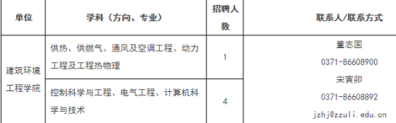 學校招聘電子郵箱:zhaopin zzuli.edu.cn;