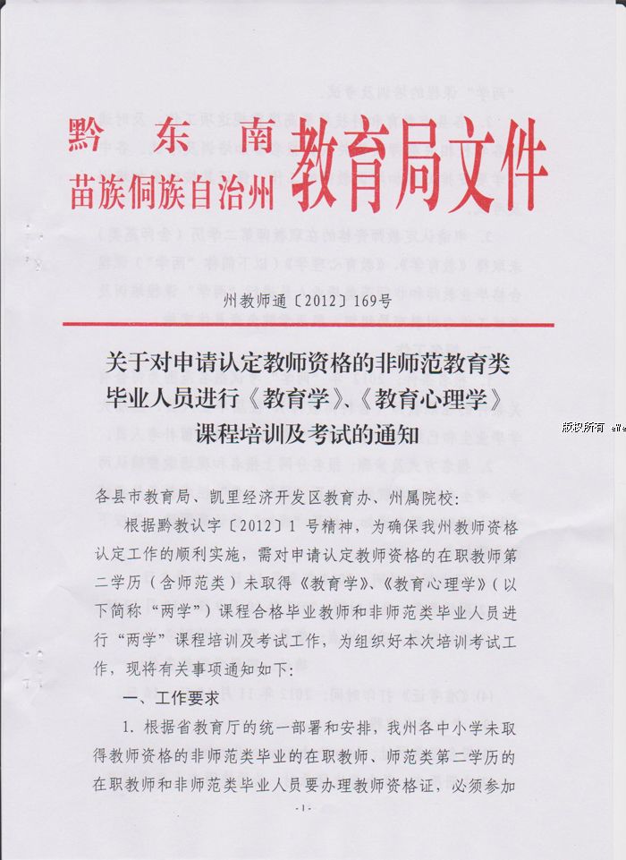 銅仁市2012年春季教師資格證《教育學(xué)》《教育心理學(xué)》考試及考前培訓(xùn)的通知